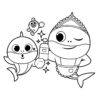 Baby shark all characters. Coloring page to print or download and color for your kids.