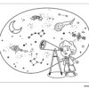 Boy traveling in rocket. Coloring page to print or download and color for your kids.