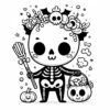 Cute Halloween skeleton. Coloring page to print or download and color for your kids.