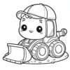 Cute little digger with helmet. Coloring page to print or download and color for your kids.
