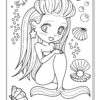 Cute little mermaid. Coloring page to print or download and color for your kids.