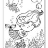 Cute mermaid with fish. Coloring page to print or download and color for your kids.