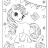 Cute pony with sweets. Coloring page to print or download and color for your kids.