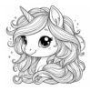Cute unicorn with long hair. Coloring page to print or download and color for your kids.