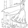 Elsa in the wind with leaves . Coloring page to print or download and color for your kids.