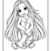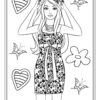 Girl trying dress. Coloring page to print or download and color for your kids.