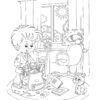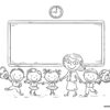 Girl with cat at school. Coloring page to print or download and color for your kids.