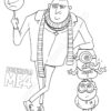 Gru holding Gru Junior Despicable me 4. Coloring page to print or download and color for your kids.