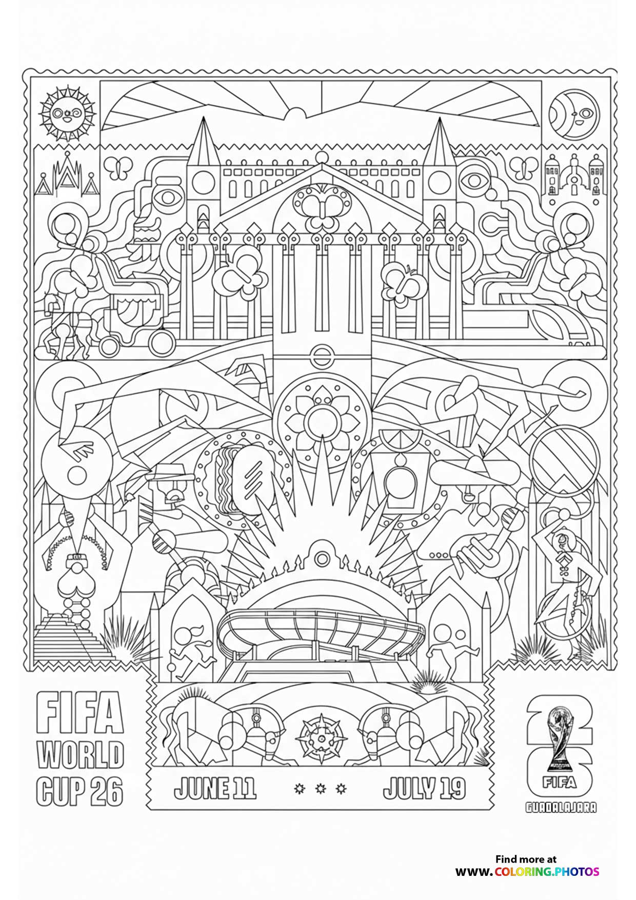 Guadalajara FIFA 2026. Coloring page to print or download and color for your kids.
