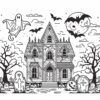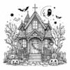 Halloween mansion with pumpkins. Coloring page to print or download and color for your kids.