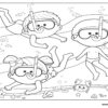 Kids on a beach. Coloring page to print or download and color for your kids.