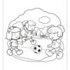 Little boy kicking the football. Coloring page to print or download and color for your kids.