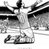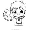 Little Messi with a cat. Coloring page to print or download and color for your kids.