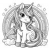 Little unicorn with long hair. Coloring page to print or download and color for your kids.