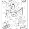 Mermaid waving. Coloring page to print or download and color for your kids.