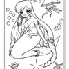 Mermaid with a pear chain. Coloring page to print or download and color for your kids.