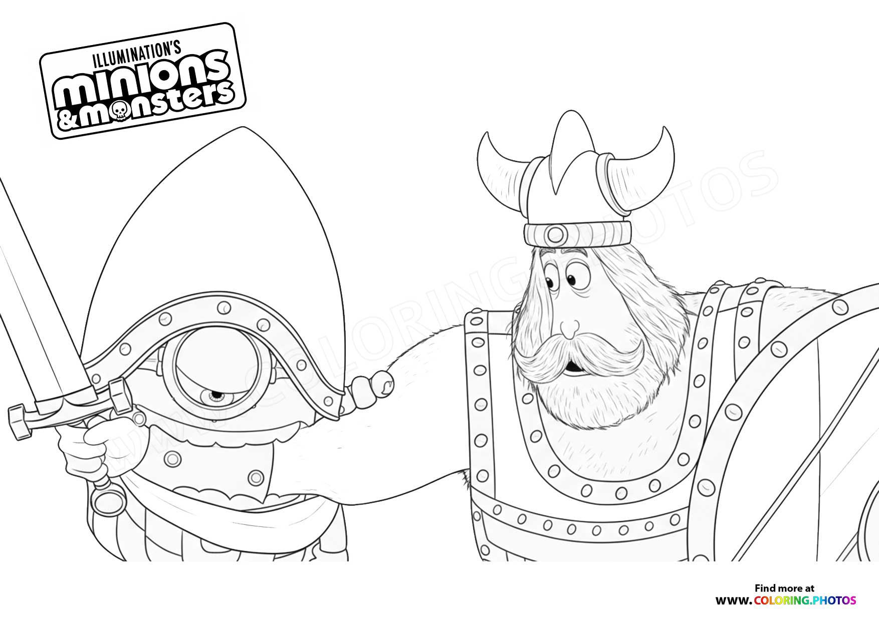Minion biting viking Minions & Monsters. Coloring page to print or download and color for your kids.