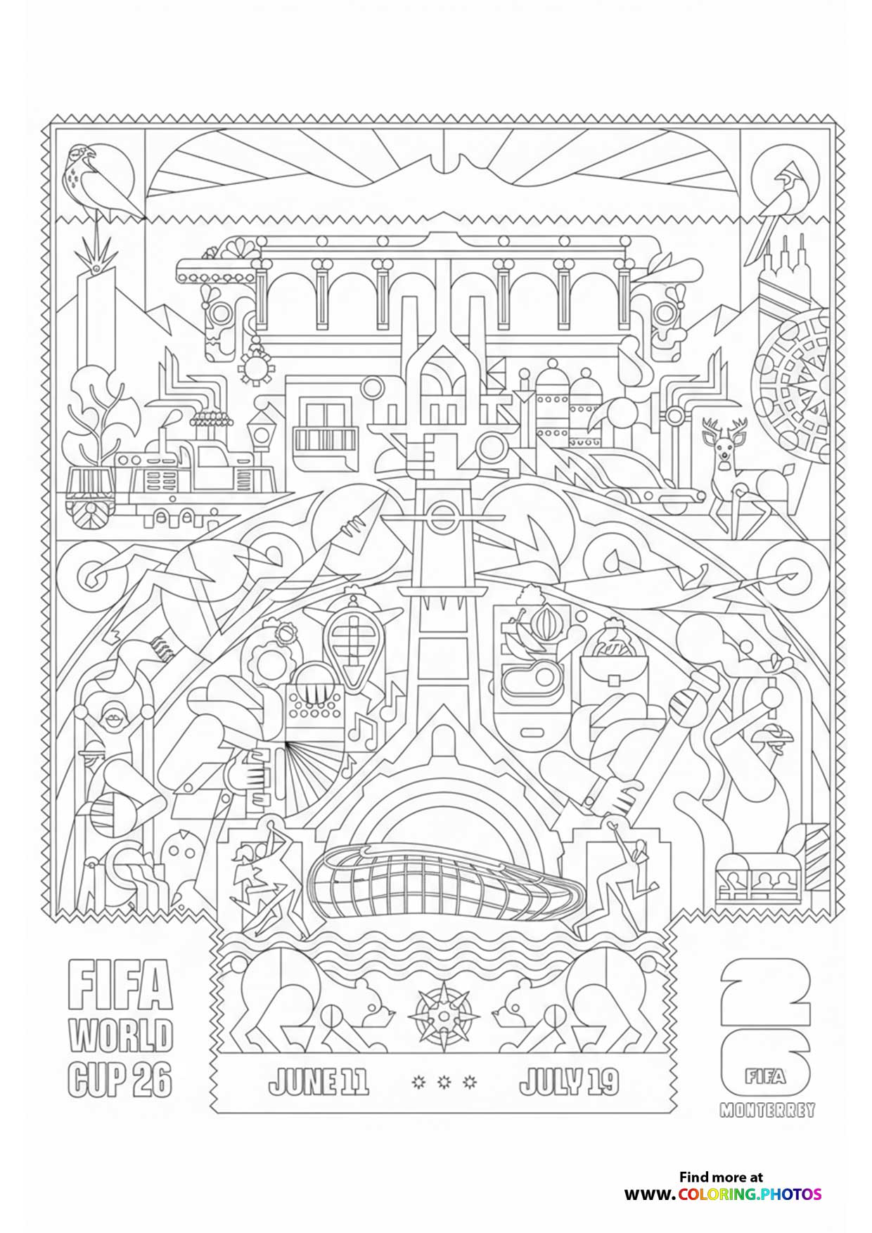 Monterry FIFA 2026. Coloring page to print or download and color for your kids.