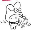 My Melody with strawberry. Coloring page to print or download and color for your kids.