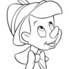 Pinocchio going to school. Coloring page to print or download and color for your kids.