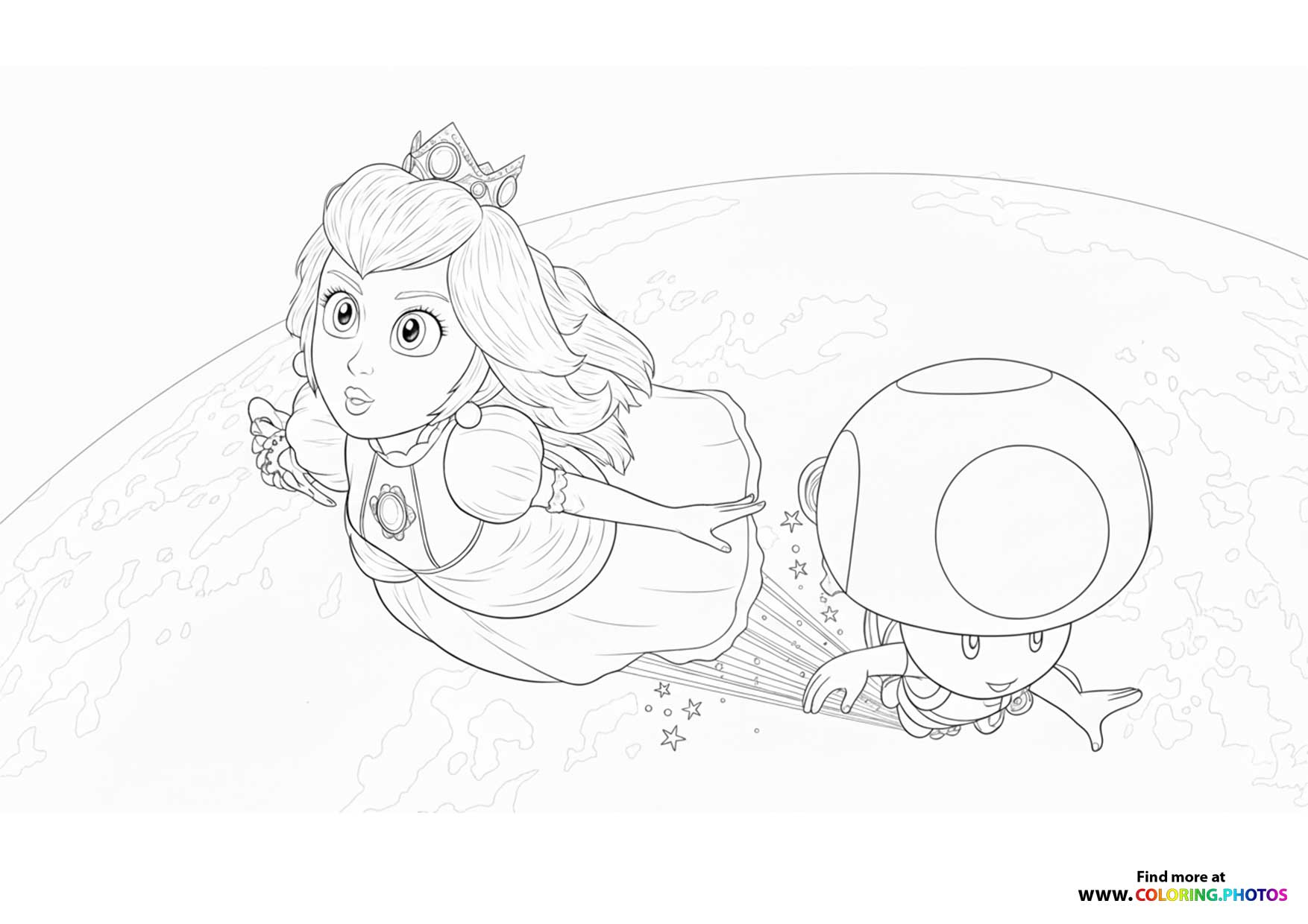 Princess Peach and Toad Mario Galaxy Movie. Coloring page to print or download and color for your kids.