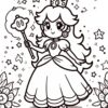 Princess Peach in garden. Coloring page to print or download and color for your kids.