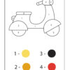 School bus color by numbers. Coloring page to print or download and color for your kids.