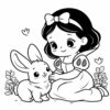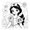 Snow White with a bird. Coloring page to print or download and color for your kids.