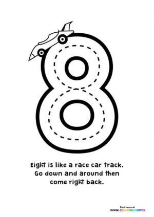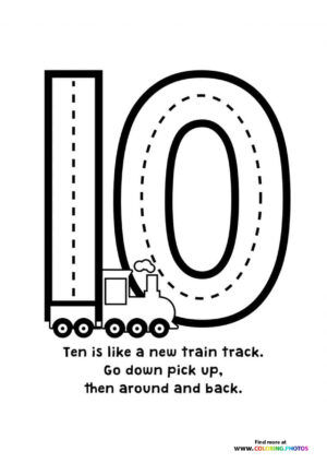 Free Trace numbers coloring pages. Download the whole book as pdf or seperate pages and numbers. Free and easy to print, color and learn.