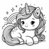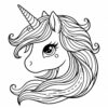 Unicorn in front of rainbows. Coloring page to print or download and color for your kids.