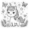 Unicorn in front of the rainbow. Coloring page to print or download and color for your kids.