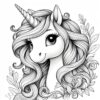 Unicorn riding in front of rainbow. Coloring page to print or download and color for your kids.