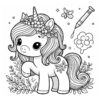 Unicorn with beautiful hair. Coloring page to print or download and color for your kids.