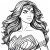 Wonder Woman with a shield. Coloring page to print or download and color for your kids.