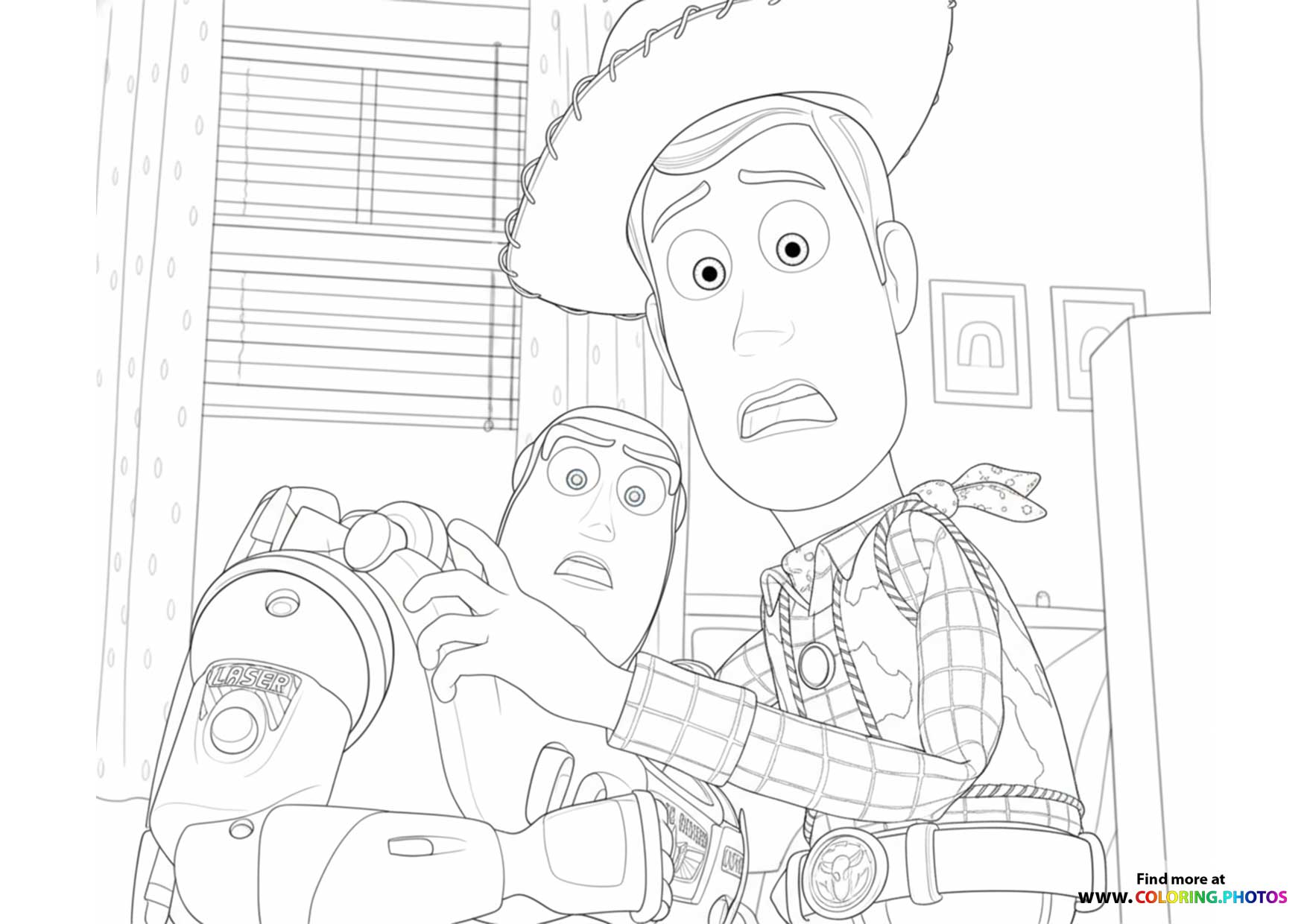 Woody and Buzz Scared Toy Story 5. Coloring page to print or download and color for your kids.