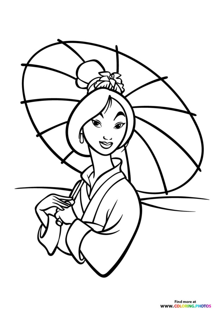 Mulan portrait Disney princess. Coloring page to print or download and color for your kids.