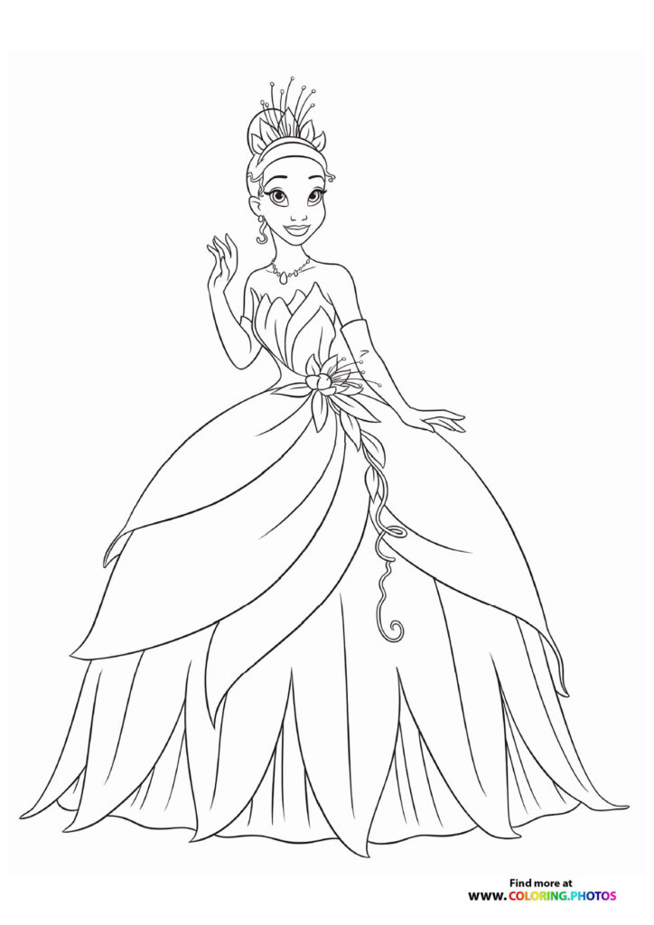 Tiana Disney princess. Coloring page to print or download and color for your kids.
