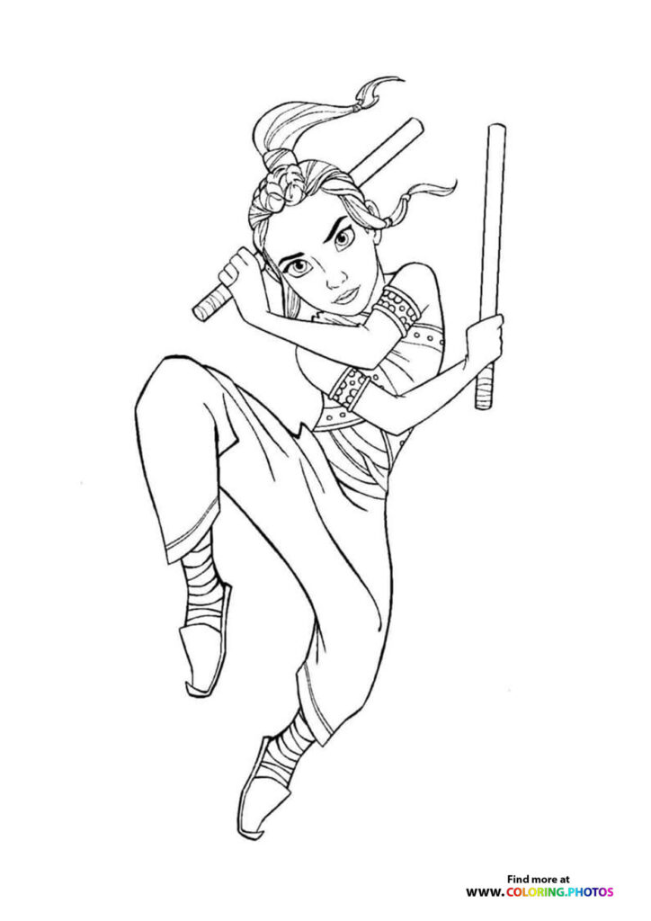 Little Raya Disney princess. Coloring page to print or download and color for your kids.