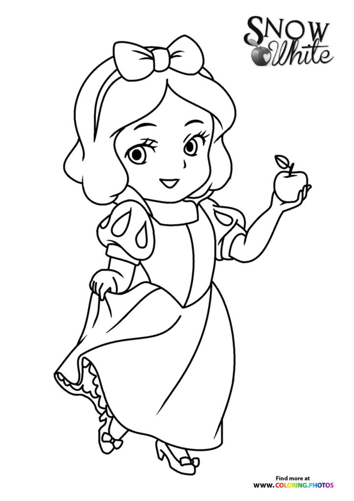 Little Snow White Disney princess. Coloring page to print or download and color for your kids.