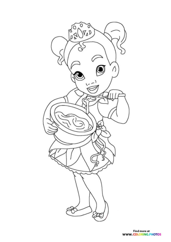 Little Tiana Disney princess. Coloring page to print or download and color for your kids.