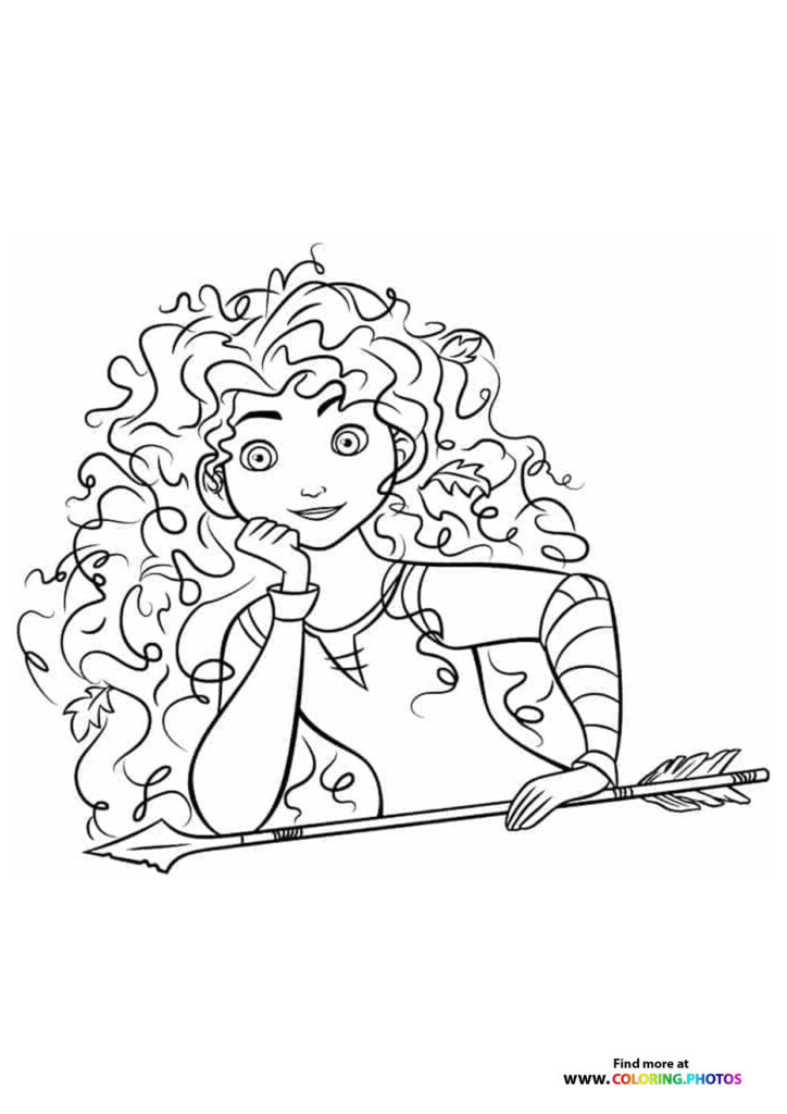 Merida Disney princess. Coloring page to print or download and color for your kids.
