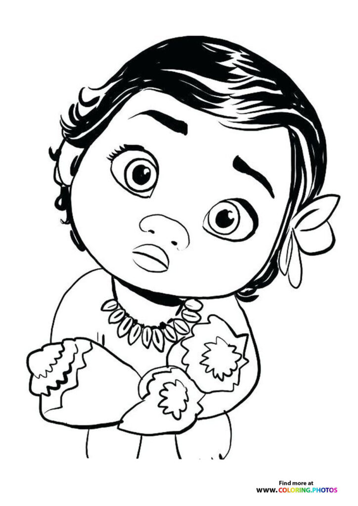 Little Moana Disney princess. Coloring page to print or download and color for your kids.
