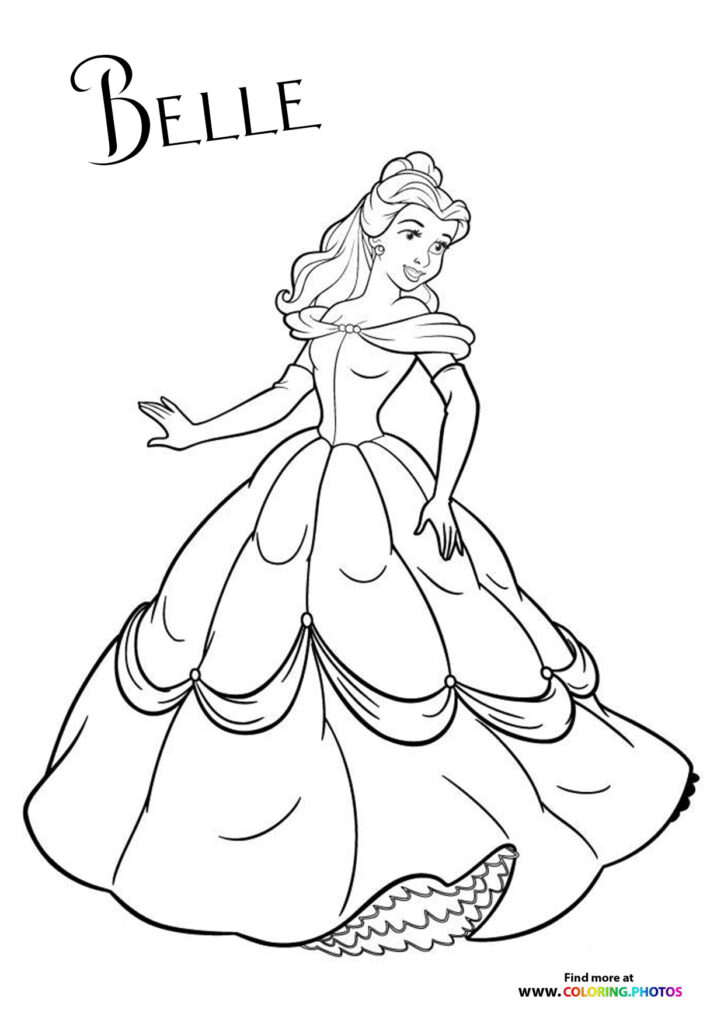 Belle Disney princess. Coloring page to print or download and color for your kids.