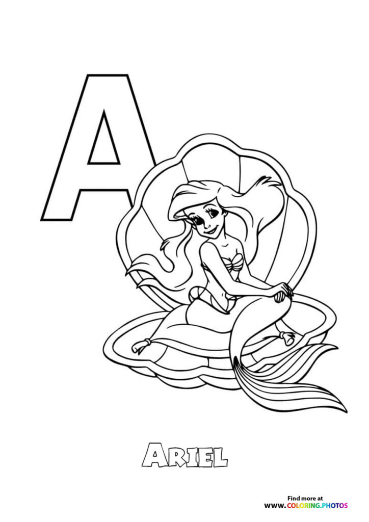 Ariel Disney princess. Coloring page to print or download and color for your kids.