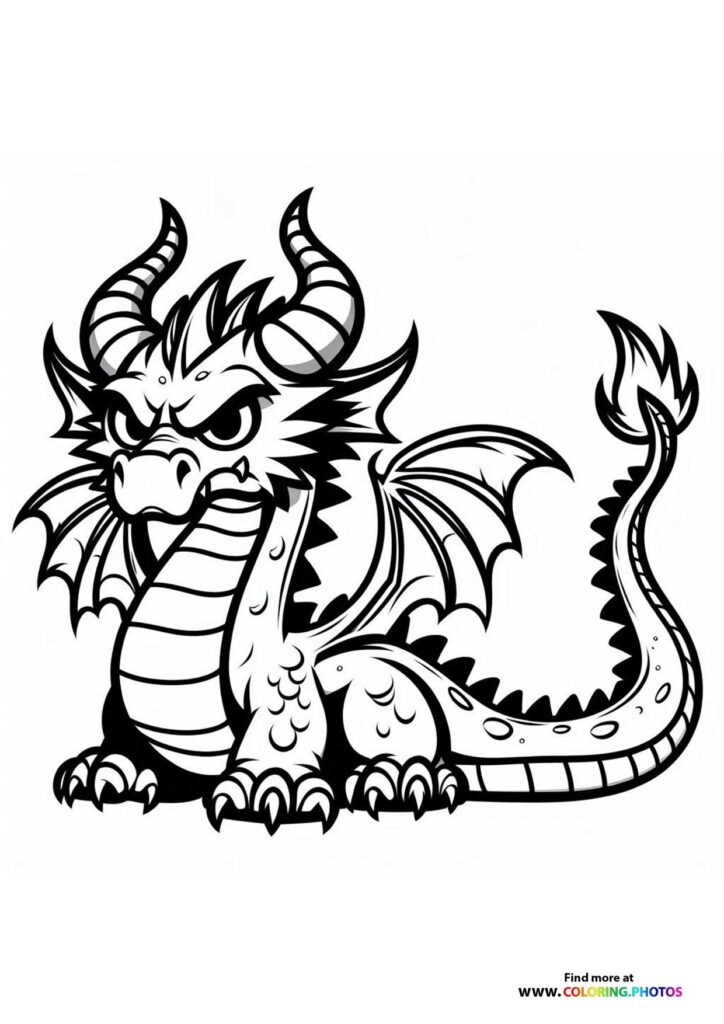 Mean Dragon. Coloring page to print or download and color for your kids.