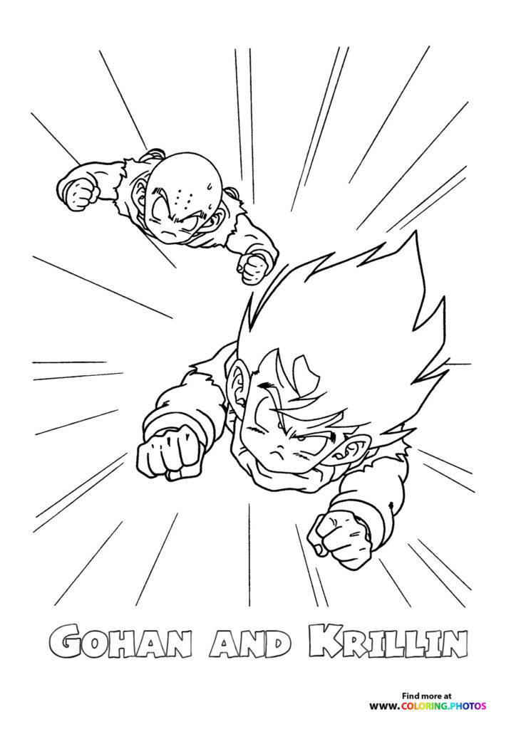 Gohan and Krillin Dragon Ball Z. Coloring page to print or download and color for your kids.